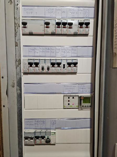 Deux minibus prennent la direction de Bonneval. Une première équipe part en fin de matinée pour acheter le matériel nécessaire. Pendant ce temps, Patrick, notre électricien pro, attaque le remplacement du coffret électrique.