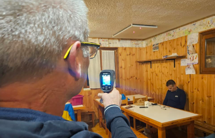 Patrick vérifie les températures de surfaces panneaux radiateurs radiants du plafond (trop chauds)