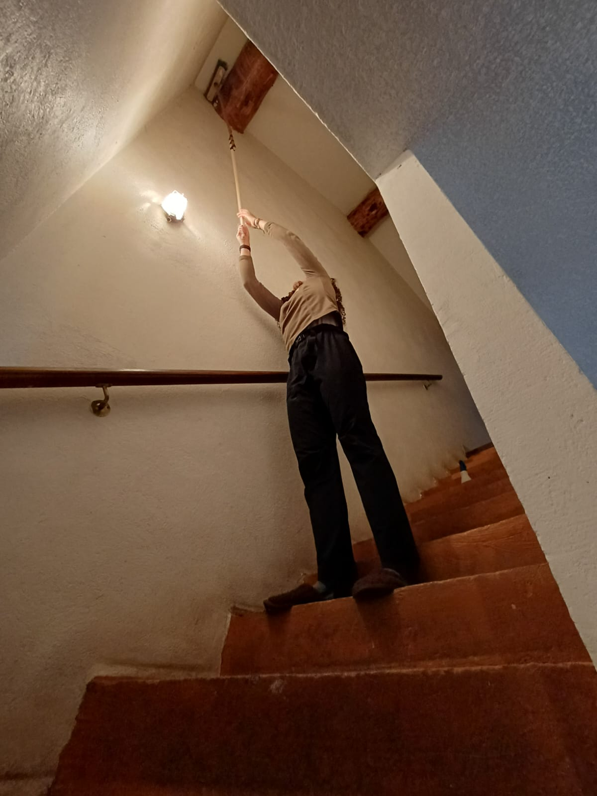 Nathalie vernit les marches et Solène part à la chasse aux toiles d'araignées les plus inaccessibles