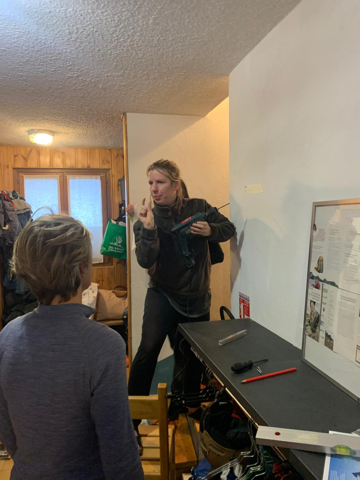 La journée se termine avec le pot d’accueil de la station et des courses de luge contre un Border Collie du village. Petit point sur le rétroplanning et la fin des travaux avant de se coucher et certains craquent et attaquent la découpe des mousses d’isolation phonique des escaliers.