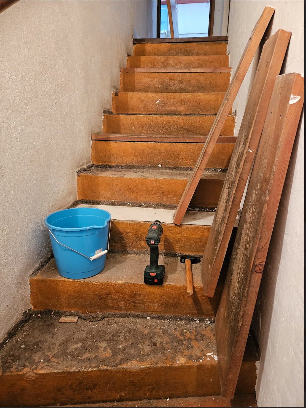 Un des gros objectif du week-end était l’escalier, le conseil de tonton Lionel était d’enlever les marches pour les poncer.