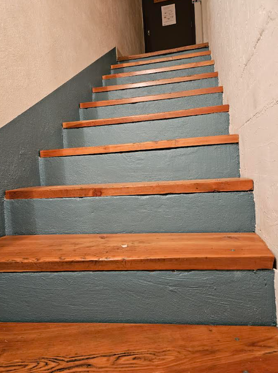 Solène et Firdevs n’arrivent pas à attendre et attaquent la sous couche des contre marches avant d’aller se coucher.