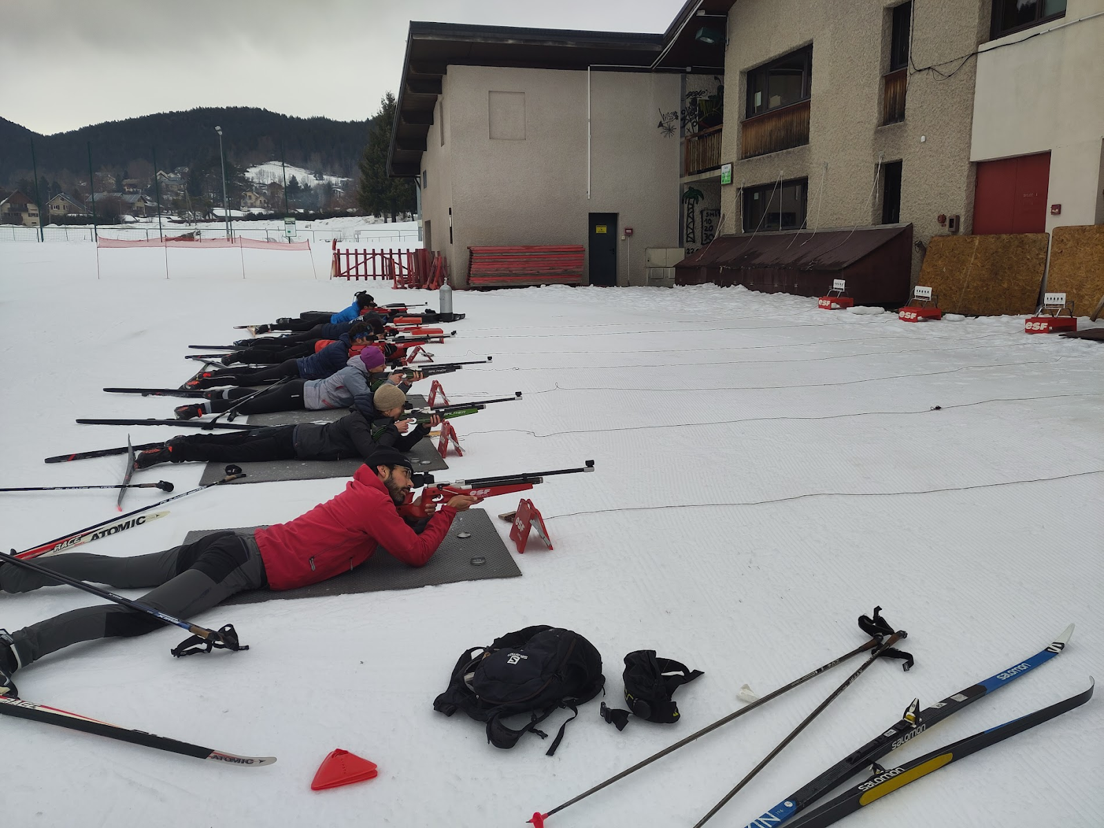 - Action : TrĂšs vite, l'ambiance est montĂ©e dâun cran avec des exercices ludiques : courses en patrouille et relais endiablĂ©s. Entre la luciditĂ© nĂ©cessaire derriĂšre la carabine et l'effort des tours de pĂ©nalitĂ©, tout le monde a pris conscience de la difficultĂ© du combo « ski + tir » !