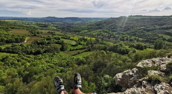 Le dimanche, c’est journée pluvieuse. Nous abandonnons les falaises mais faisons une petite rando vers le site « Bout du monde » et allons voir une cascade, avant de rentrer au gîte et de faire quelques révisions de manip, noeuds de mule et autres cabestans. En fin de journée, lorsque les pluies s’arrêtent, nous décidons d’aller faire un tour en vélo et en profitons pour faire l’inauguration de la nouvelle saison culturelle du bar associatif Le ptiot bistro avec soirée musique traditionnelle et cours de danse bourguignonne.