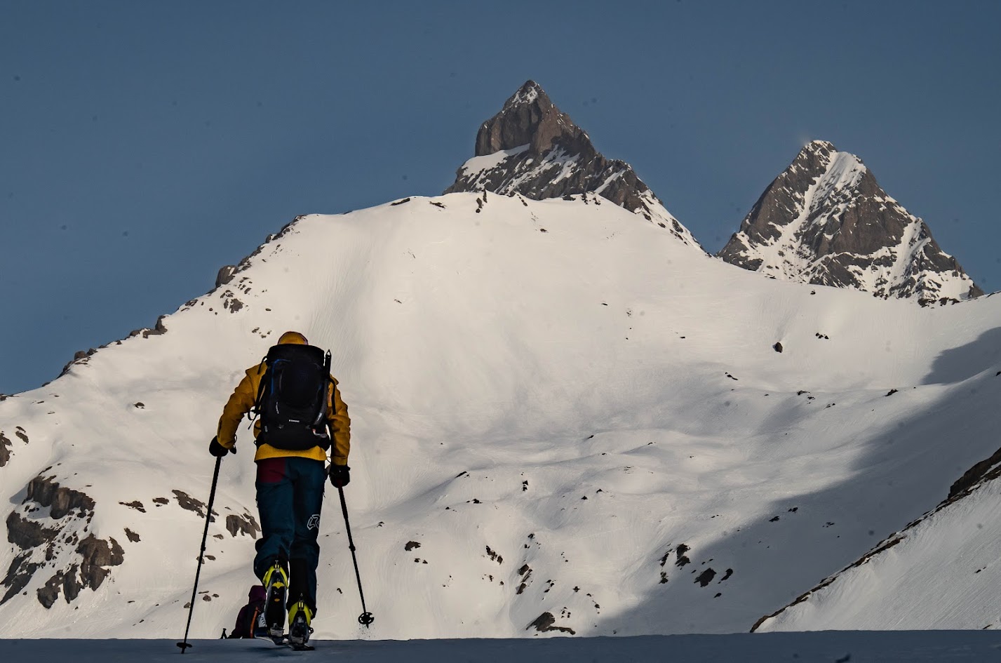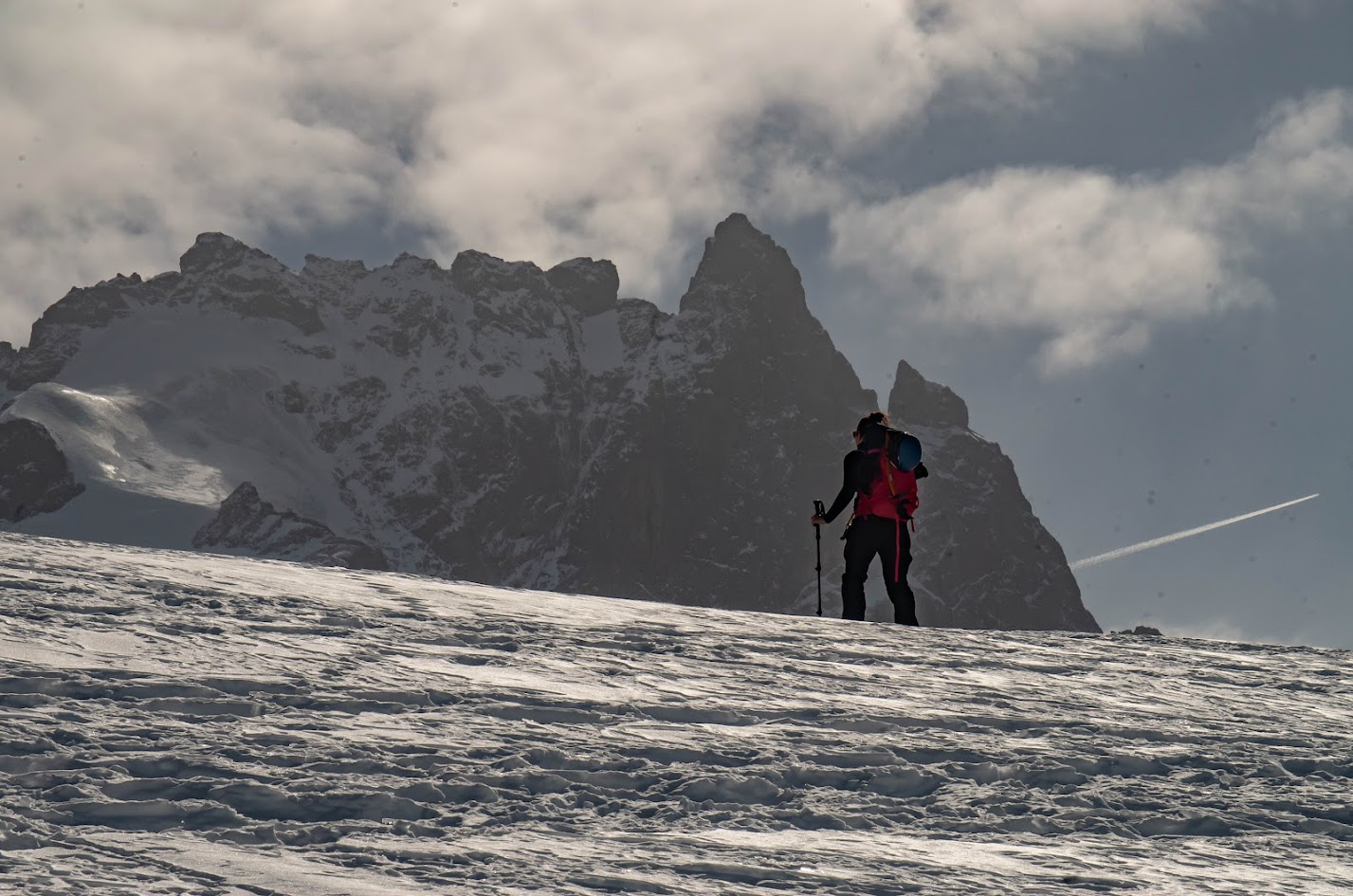Début mars, l'anticyclone fait son apparition, c'est parti pour le dernier week-end de 5 jours du cycle Lagopèdes. Le départ de Lyon est rodé, nous retrouvons notre train pour Grenoble. En arrivant sur le quai, skis en antenne sur le sac à dos, le conducteur de train, curieux, sort la tête de sa cabine et nous interroge sur notre projet. Le conducteur est donc briefé. Il nous mène à l'heure à Grenoble, par le bon itinéraire, sans prise de risque. Après le ravito, nous grimpons dans le bus et retrouvons le chauffeur de la dernière fois, toujours aussi serviable et exigeant en matière de sécurité (il vérifie les ceintures une à une avant de partir). Mais cette fois-ci, nous descendons avant le col du Lautaret, à La Grave. Après la traversée du village par ses petites ruelles (non sans piège suite à un enneigement abondant), nous pouvons chausser les skis dès le début, destination refuge du Pic du Mas de La Grave. Le départ d’un beau périple de 5 jours, avec de grandes boucles et du tricotage entre buffes, cruq et aiguilles.