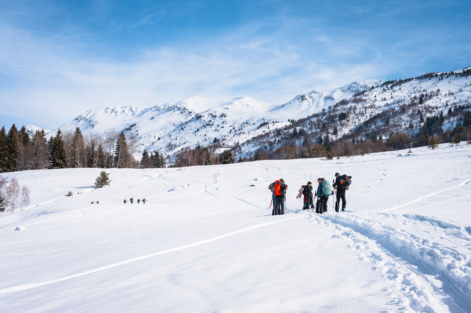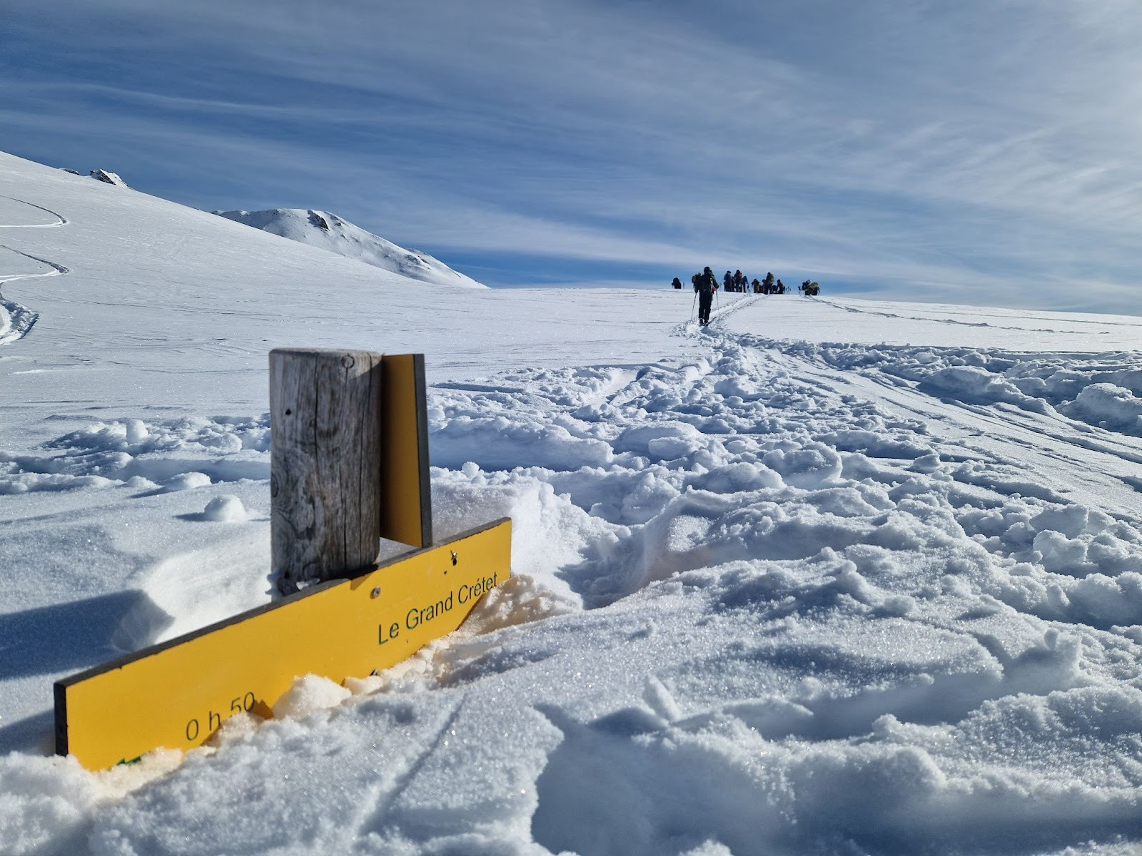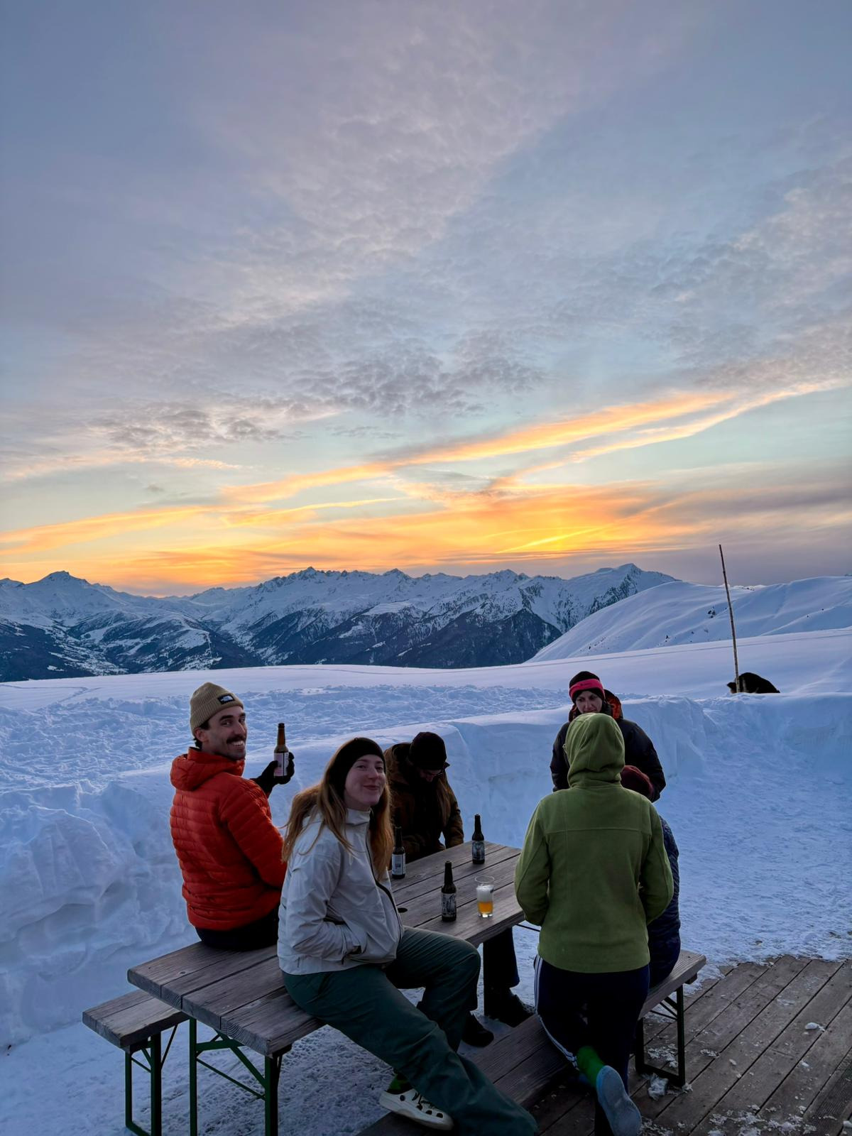 - Quatrième étape : retrouver le reste de la meute… Qui a déjà eu le temps de pique-niquer et de commencer la sieste digestive. Je suis en petite polaire légère, j’ai troqué mon bonnet pour le combo casquette-lunette et je me sens exactement là où j’ai envie d’être. Nous rechaussons claclac ! et reprenons notre randonnée.