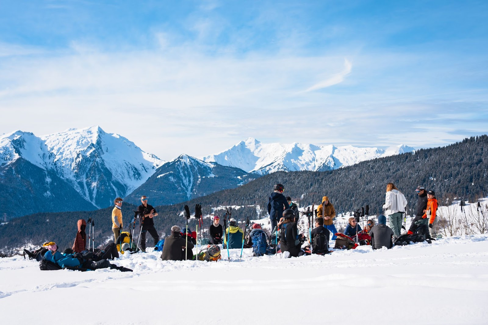 Un dernier atelier technique pour clore ce week-end découverte avec un exercice DVA, pour apprendre à utiliser correctement nos appareils et s’initier à la recherche de victimes d’avalanche. Notre mission ? Retrouver des DVA cachés par nos encadrants et émettant un signal. Nous sommes des équipes de 4 et clairement, certains ont plus d’avenir que d’autres dans une carrière de secouriste… Je note de bien choisir mon modèle de DVA si je dois investir et me promets de m’entraîner sérieusement à la maison. Après le sauvetage de 3 DVA pour seulement 2 plaques (la 3ème ayant finalement été retrouvée - je note aussi l’importance de bien communiquer pour éviter aux copains de creuser pour rien), nous reprenons le chemin du retour vers le parking de Nâves.