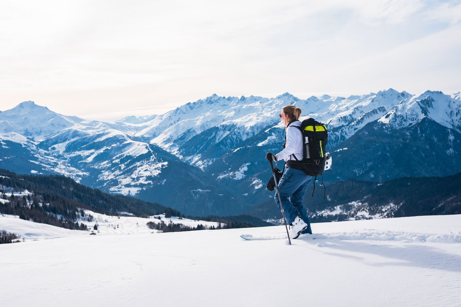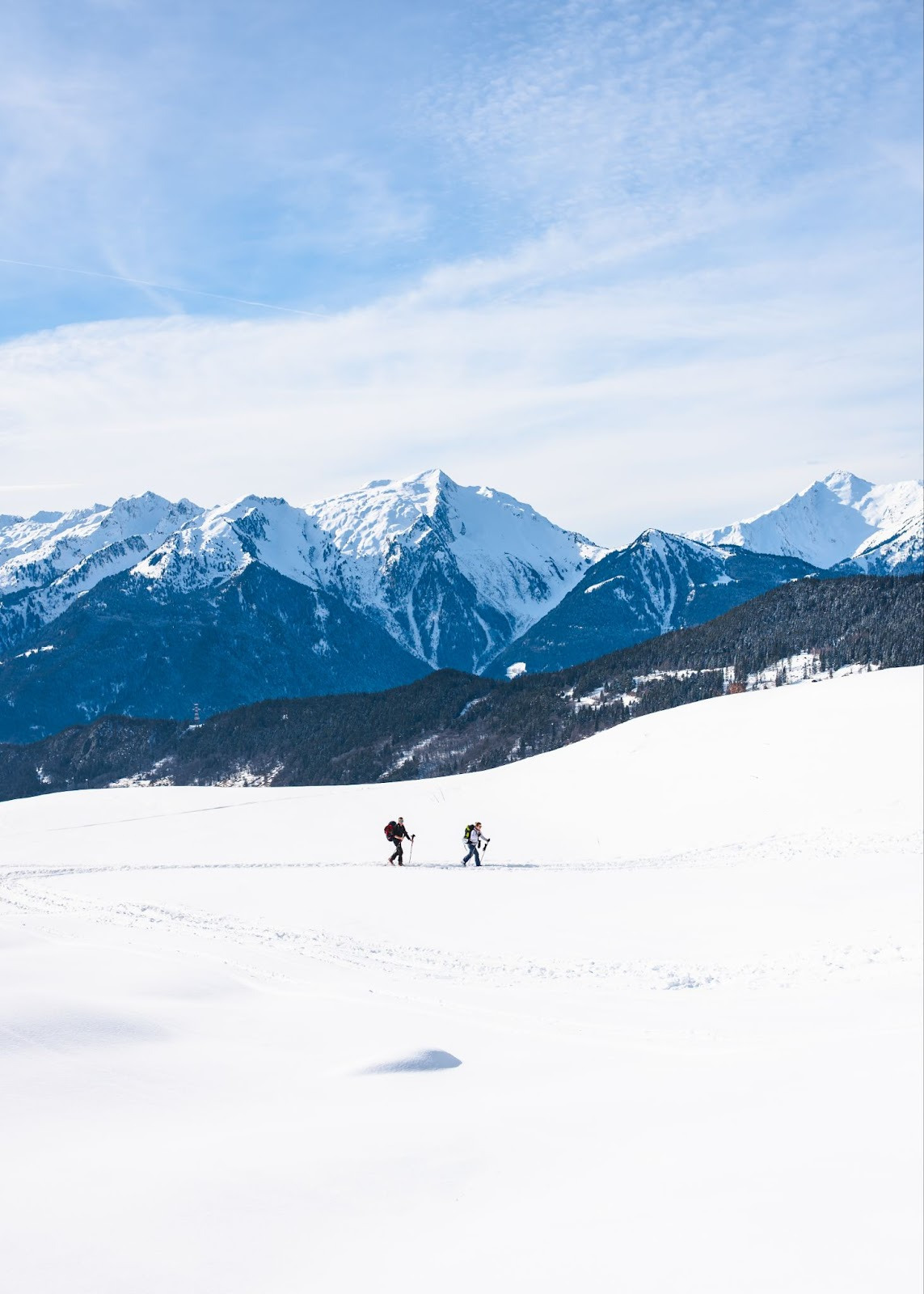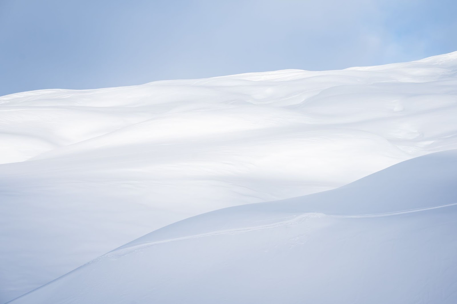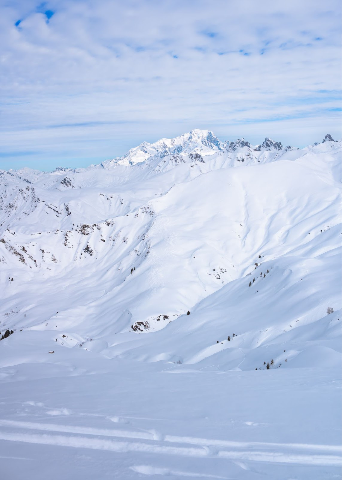 Mais comme toutes les bonnes choses ont une fin… Il nous faut remettre les peaux pour atteindre le sommet du Grand Crétet, étape indispensable de notre randonnée puisque c’est là que nous pique-niquerons, vue dégagée à 360° et Mont Blanc dominant l’horizon. Finalement, la fin d’une bonne chose annonce le début d’une autre ! Le soleil se fait plus timide mais nous commençons la descente finale dans la joie et la bonne humeur avec un petit shooting photo improvisé. On s’en donne à coeur joie et très vite, la météo nous offre ses plus belles lumières (décidément, un week-end maussade jusqu’au bout !).