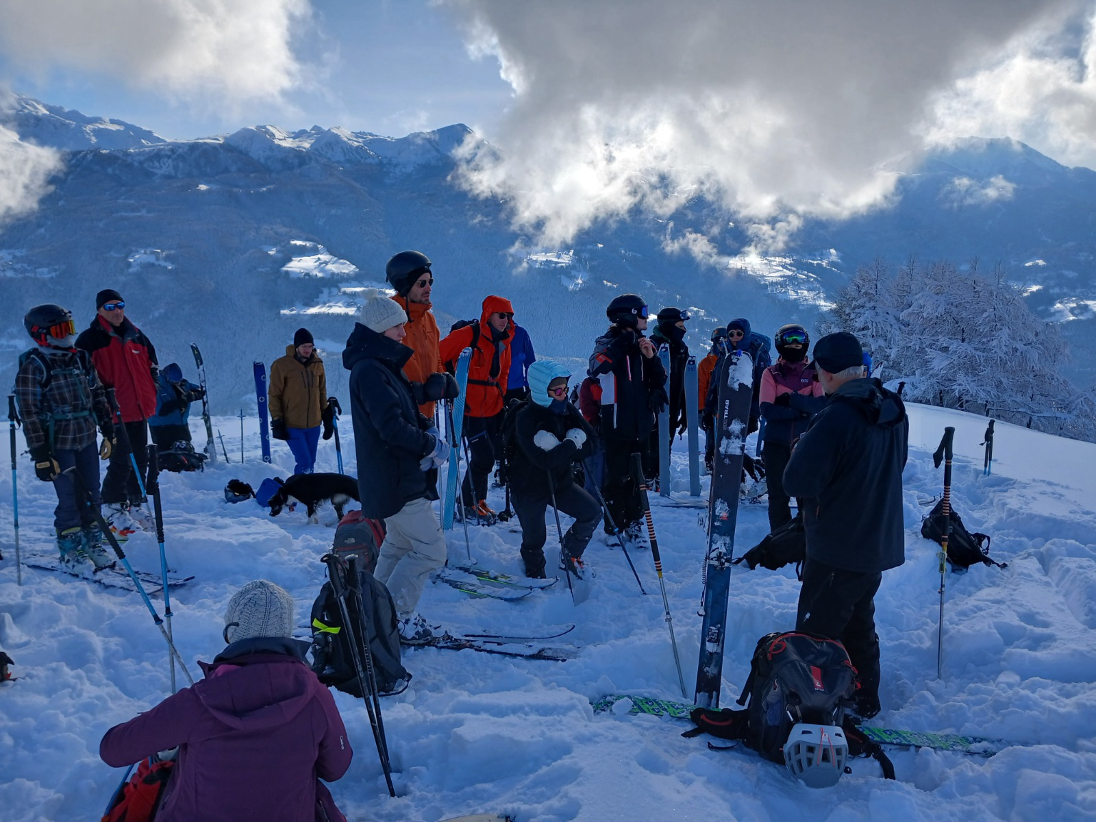 On apprend à laisser de la place et à monter tranquillement ! On dépote et ça file pour la descente, ponctuée de jolies chutes de nos skieurs “débutants”, c’est sûr ça change des pistes en station !!