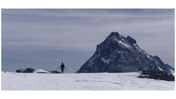 Pour ce dernier jour, on remonte vers le col Vieux et on contourne le Pain de sucre pour atteindre le Rocca Rossa, on profite d’une vue imprenable sur la Taillante. On descend un peu, Christelle tente un petit cours sur le “planté de bâton” pendant que Arnaud bataille avec sa fix’ gelée. On rejoint la brèche de Ruine et on profite de la descente. Il est encore tôt, on remonte vers le col de l’Eychassier et on fait bien, car la descente du col nous offrira la meilleure neige du séjour ! On passe les lacs et on descend tant bien que mal jusqu’à L’Echalp, la neige est alors très lourde et il commence à pleuvoir, ça sent vraiment la fin.