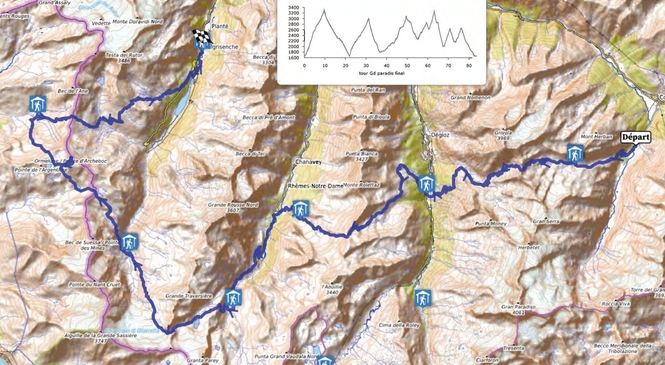 Ce parcours passant par quelques sommets et cols situés à plus de 3000 m d’altitude offre des perspectives sur les grands massifs alpins, Mont-Blanc, Ecrins, Mont-Rose, Cervin.