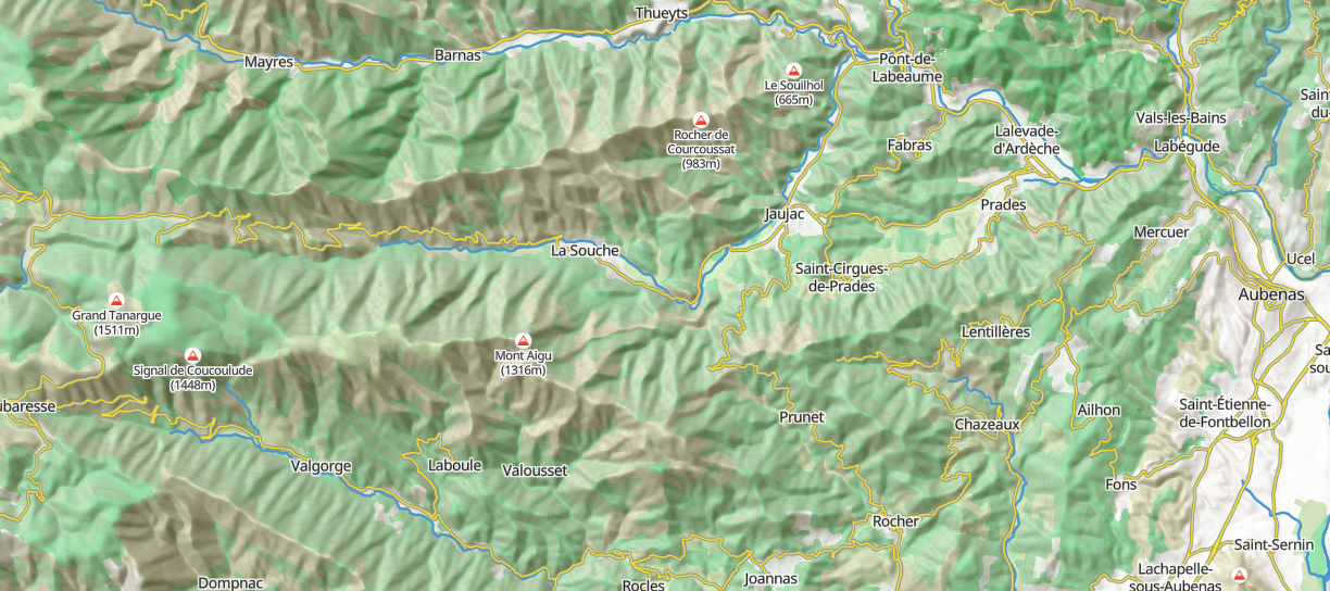 Entre la Souche, Valgorge et Joannas, autour du Mont Aigu et du Sommet de Mejan