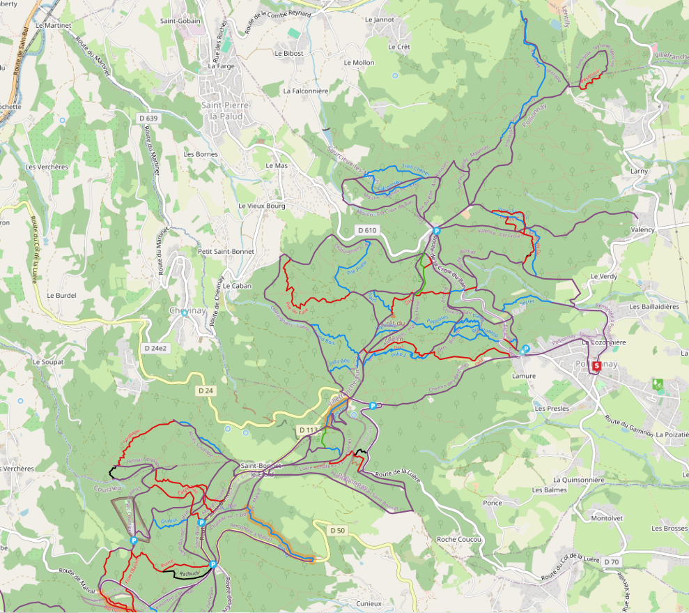 • ITINÉRAIRE DE L'ACTIVITÉ : Montée dans les Monts du Lyonnais ( Col de la Luère / Col de Malval) depuis la Gare de Lentilly-Charpenay par les petites routes et/ou pistes forestières faciles. Puis sentiers T2-T3 (bleu/rouge Trailforks) Retour sur une gare (l'Arbresle, Lentilly-Charpenay) ou directement sur Lyon à la pédale.