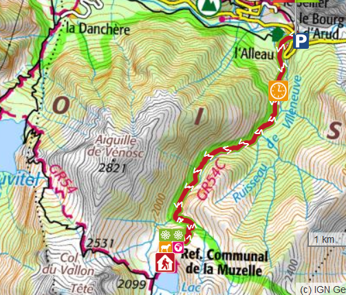 Départ du village de Bourg d'Arud et direction refuge et lac de la Muzelle